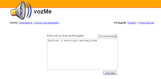 O programa vozMe foi adicionado ao fim de cada post do Blog Deficiente Ciente numa forma de facilitar a leitura das pessoas com deficiência visual. Clicando em “ouça este post” você será direcionado a uma janela onde há o ícone vozMe. Clique nesse ícone, copie e cole o texto e clique em criar mp3.